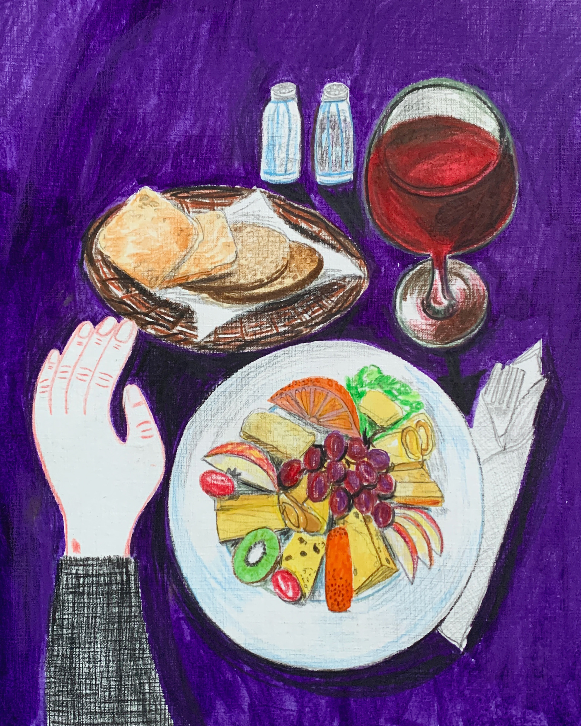 wine and cheese platter / mixed media